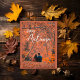 A modern style and minimalist typography for this white script" Happy Autumn". You can also easily change the color of the font or photo to your liking. with an autumn message on the back.