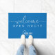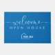 Introducing our custom open house welcome doormat, designed specifically for real estate agents. Welcome visitors with professional branding at every turn. Shown in a classic blue and white palette with a modern script font for "welcome", though all colors are editable. Personalize the template with your event title as well as upload your business logo. © Kimbellished, LLC