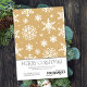 Custom Christmas Cards displaying your company logo on the front and your custom text. The design features a simple modern christmas snowflake pattern in white on a gold background. The logo template is set up for you to upload your business logo and all of the text is editable. This design works best for an elongated rectangle logo - if you have a square or circle or standard rectangle logo please browse my store for the design in that format, which should work better for you.