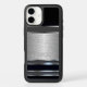 Contemporary shiny black and stainless steel brushed metal steel pattern. With room to customize or personalize with a name, monogram, or initials of your choice. Beautiful, modern, and cool cover for the trend-savvy and art-loving hip trendsetter, artsy motif lover who wants to protect their phone from dust and dirt, wear and tear. This design is available in Apple iPhone 6, 7, 8 Plus, 10 or X, XR, XS, 11, 12, 13 Mini, 14, 15 Plus, and Pro Max cellphone cases. Show off your style, look fashionable trendy, and feel stylish with a unique design on a mobile device accessory of your choice.