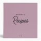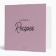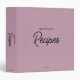 Custom Simple Pink Minimalist Script Recipe 3 Ring Binder