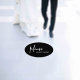 Custom black business floor decal featuring a minimalist design with the message "please wait here". A basic and plain design that still comes across as professional. This simple business floor decal is completely customizable and is great for any type of business, big or small.