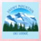 Customized ski lodge wall art for your summer vacation home in the Colorado mountains or a beautiful cabin in the forest. This cool design features a pretty drawing of snow capped mountains in front of green fir trees. Great nature artwork for an outdoors loving family.