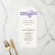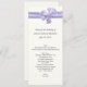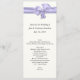 Long and skinny wedding table menu done in ivory with elegant graphics of a lavender satin ribbon and bow, on the top of the menu. Personalize all the text to suit your wedding reception menu.