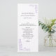 Long and skinny wedding table menu done in white with embossed looking light purple colored floral flourishes. Personalize all the text to suit your wedding reception menu. Matching wedding products available.