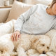 Embrace cozy days with your furry best friend in this adorable custom Doodle Mom sweatshirt. The front features a minimalist line art design of a sleeping Doodle, complete with a playful "Shhh. We're busy." quote and your dog's personalized name in a soft cafe au lait beige. On the back, elegant typography proudly displays your Doodle Mom status with a cute paw print detail. It is perfect for lazy weekend mornings or relaxing evenings curled up on the couch together. This sweet and comfortable piece makes a thoughtful gift for any dog lover who cherishes those quiet, snuggly moments.