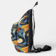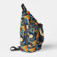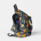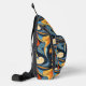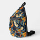 This custom sling bag is shown in a multi color abstract art print, buy as shown or add to it.