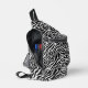 This custom sling bag is shown in a black and white zebra animal art print, buy as shown or add to it.