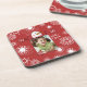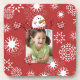 Easily add a favorite photo to our Snowman photo coasters before ordering. A snowman on a red background with lots of pretty white snowflakes and an area you can add your favorite photo on coasters you'll love using throughout the entire winter!