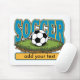 A Soccer sits ready on the grass with large blue SOCCER text outlined in yellow! Add your custom text below this Soccer design in the space provided. Perfect for any Soccer player or Soccer fan, add names, school names or sports message! Customizable Soccer shirts and Soccer gifts!