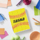 I was super excited when I got my cover in. It is attached by a magnet across the edge. I don’t think it will be very protective but it is very cute. I’m going to keep my iPad in a sleeve and use this face cover while I have it out. It folds to create a tilt for better viewing and to keep the iPad at a slight angle for typing. The colors are bright and it is fun. I’ve really enjoyed it. The personalization looks like amazing. It is the same color as the picture and is the same brightness. Well done! Very nice.