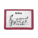 Designed for both style and organization, this wallet provides ample space for cards, cash, and identification while maintaining a slim, classic profile. It’s an ideal accessory for music teachers on the go, students heading to lessons, or any musician who appreciates a touch of personal flair. The name at the top is fully customizable, allowing you to replace "Sarah" with your own name, a music school, or a word like "Lyricist." It’s a rhythmic and practical way to keep your valuables secure and your style in tune.