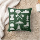 Easily add the name of your favorite campground and the state it's in to create your own souvenir camping throw pillow or cushion or add a family name or other text to create a custom that's perfect for decorating your cabin featuring a collage of camping scenes and outdoor equipment in white against a hunter green background. Makes a cool gift for campers and anyone who loves the great outdoors. There are illustrations of mountains, a tent, a campfire, a lantern, hiking boots and more.
