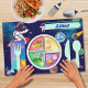 Make mealtime out of this world with our customizable double-sided space placemat for kids! One side features a simple illustrated meal plate divided into food groups; Fruits, Vegetables, Grains, Protein, and Dairy, ideal for teaching balanced nutrition. Flip it over for a more advanced layout with playful space elements like astronauts, rockets, planets, and stars. Designed to spark curiosity and healthy habits, this placemat is perfect for toddlers, preschoolers, and young explorers. Personalize with your child’s name to make nutrition feel like their own intergalactic mission!