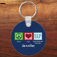 Cute personalized speech therapist keychain gift. Peace love and speech language pathology on dark blue background with your SLP's name. A great speech language pathologist gift.