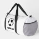 Custom sports duffle bag with soccer ball logo. Color can be changed. Handy for practice, gym, fitness, yoga, sports, travel and more.