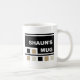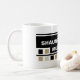 This mug with a square design pattern can be personalized by entering name under the "Personalize it" tab.