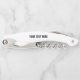 Custom squash ball Waiter's Corkscrew. Foldable opener for wine and beer bottles. Includes folding foil cutter knife and cap opener. Handy pocket size opener with personalized text. Print your name on the other side.