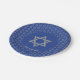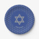 Custom STAR OF DAVID Paper Plates. Elegant mid blue STAR OF DAVID Paper Plates, showing with faux silver Magen David in a tiled pattern. At the center, there is an image of a larger Star of David, which is CUSTOMIZABLE, so you can upload your own image. Underneath, the text reads CHAG SAMEACH. This is also customizable so you can add your greeting and/or name, etc. This is a minimalist, simple, elegant design, especially suitable for Passover, Hanukkah and other Jewish festivals. Comes in other colors, and matching items are available.