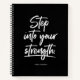 Empower your daily routine with this modern motivational notebook featuring the inspiring quote "Step Into Your Strength" in simple black and white. Designed with casual handwritten script typography, it’s a clean and elegant way to stay focused, whether for journaling, planning, or gifting. Personalize with your name or a custom message.