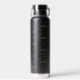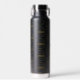 Branded water bottle in black with your business logo in a step and repeat pattern all over the bottle.