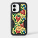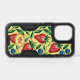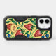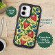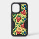 Joyful iPhone Otter Box Case with fruity summer vibe - Watercolor Strawberry and Blueberry Pattern on a yellow Background - is an ai generated design and shows a seamless repeating fruity pattern with red Strawberries, blue Blueberries and green Leaves.