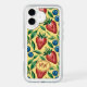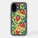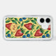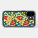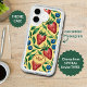 Joyful iPhone Speck Case with fruity summer vibe - Watercolor Strawberry and Blueberry Pattern on a yellow Background - is an ai generated design and shows a seamless repeating fruity pattern with red Strawberries, blue Blueberries and green Leaves.