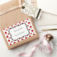A custom canning or soap label with script letters and a pattern of wild strawberries.