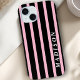 Custom Colorful Stripes Black Pink Phone case with your Name or Text.