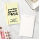 This modern student library pass badge features a lined paper background design, providing a clean look for any school. Customize it with the teacher's name, classroom number, and grade level. Ideal for schools and educators, this durable pass ensures students have a clear and recognizable ID when leaving the classroom.