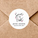 Custom Stylish Calligraphy Save the Date Wedding Classic Round Sticker
