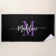Custom Stylish Monogram Name Script Black Purple Beach Towel