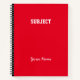Custom Subject Script Name Simple Red Notebook
