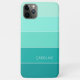Contemporary light seafoam, pastel aqua turquoise, jade green, and teal blue colored stripes pattern. With room to customize or personalize with a name, monogram, or initials of your choice. Beautiful, modern, and cool cover for the trend-savvy and art-loving hip trendsetter, artsy motif lover who wants to protect their phone from dust and dirt, wear and tear. This design is available in Apple iPhone 6, 7, and 8 Plus, 10 or X, XR, XS, 11, 12, 13 Mini, 14 Plus, and Pro Max cellphone cases. Show off your style, look fashionable trendy, and feel stylish with a unique design on a mobile device accessory of your choice.
