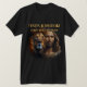 Customize your Faith Quote T-Shirt featuring JESUS KINGDOM COME - WILL BE DONE. The gold lettering and striking lion's head next to Jesus, add a unique touch. Personalize the text to your own faith quote, and enjoy the distinctive drop shadow effect that persists even with your modifications.