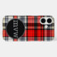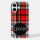 This red, grey, and black tartan plaid phone cover will protect your phone in style, featuring a classic and timeless design. Personalize it with your custom monogram, making it a unique accessory that combines function with sophistication.