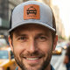 Custom Leather Patch Hat, Sytle: Adult Retro Trucker Cap, Color: Heather / Black, Shape: Circle
