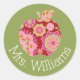 Custom Teacher Apple with Trendy Floral Pattern Classic Round Sticker