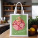 Custom Teacher Apple with Trendy Floral Pattern Reusable Grocery Bag