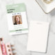 A modern minimalist personalized teacher ID badge with school logo, photo and details. Personalize with your logo, photo and details to create your own unique elegant white business badge.