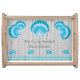 Custom Teal Aqua Seashell White Shell Coastal Gray Serving Tray