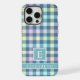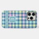 Custom Teal Blue Yellow Pink Checkered Pattern iPhone Case