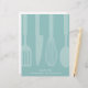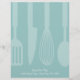 Custom teal kitchen utensils letterhead stationery paper. Elegant design with spoon, spatula, knife and whisk in the background. Customizable background color. Persoanlized cooking and baking stationary for men and women. Classy design for dinner party, wedding rehearsal dinner, restaurant menu etc. Beautiful layout.