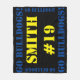 The fleece blanket is AWESOME for cold weather games, road trips or even home decor! Customize with your team colors, name and jersey number. No one will have a blanket like this - it's your own creation! Use it as a banner during games!