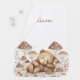 Whimsical personalized boho watercolor teddy bear featuring a watercolor, teddy bear sleeping amongst the forest mushrooms. Add baby's name, Gender neutral.