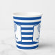 These classy modern country club paper cups features tennis rackets and a ball above your tennis team name and established date. Blue and white striped decor for your tennis players and country club members.