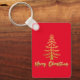Custom text backside luxury gold tree red keychain.