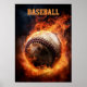 Custom Text Baseball on Fire Poster