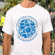 Custom t-shirt featuring a contemporary graphic pattern of bicycle shapes. Whether you're organizing a race, promoting your cycling club, gearing up for a school sports challenge, or celebrating a team reunion, this template can be personalized to fit your event. Add text to the circular border, and the year date inside. Great for bike teams, competitions, charity rides, tours, community events and more! Printed colors: blue and gray on a white shirt.