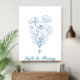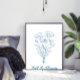 Custom Text Blue Poppy Botanical Line Art Poster